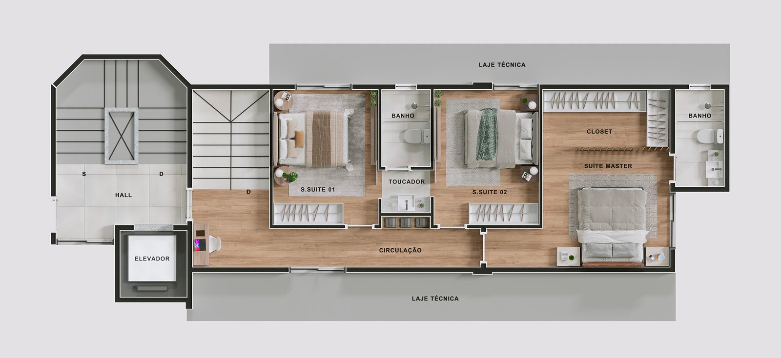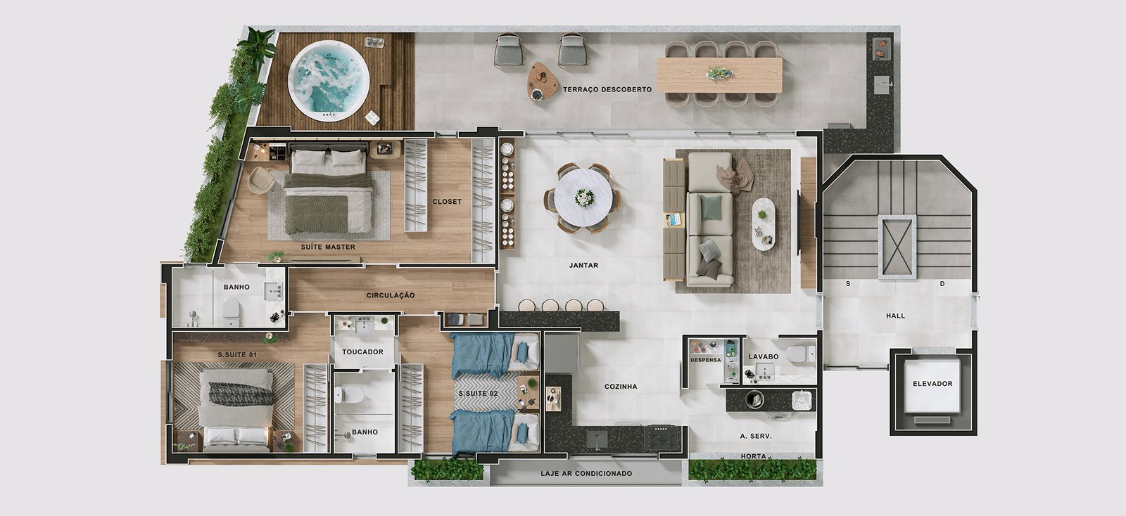Aqui, cada apartamento foi pensado para quem sabe que o verdadeiro luxo está em viver bem, com qualidade, sem excessos.